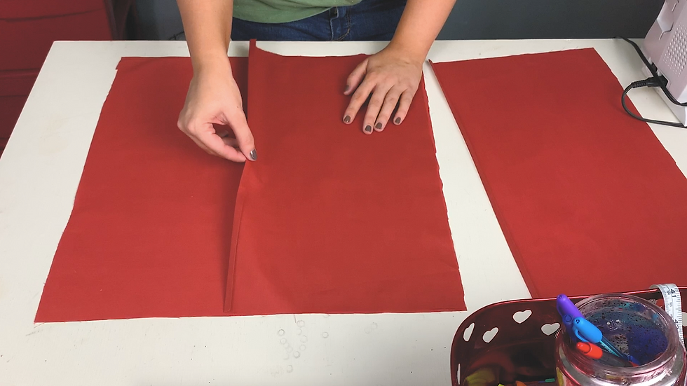 If that's confusing, think of it like this. We want to split the back of the pillow in half so we create a pocket that will allow us to insert and remove our pillow form. We want to add 2" to each back piece so that they overlap a bit, so the pillow insert isn't visible. The additional 2" on each piece also gives us enough extra fabric that we can double hem the pocket so that it looks a little more professional.